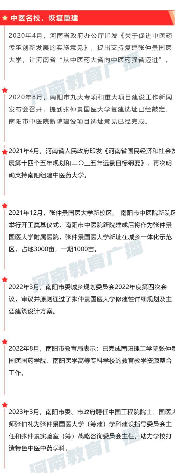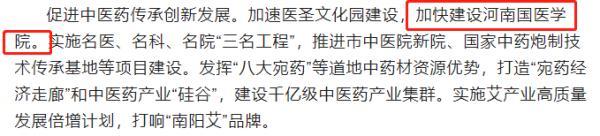 8月10日至11日,南陽市審議并通過了《中共南陽市委關(guān)于高水平建強(qiáng)現(xiàn)代化省域副中心城市高質(zhì)高效推進(jìn)中國式現(xiàn)代化建設(shè)南陽實(shí)踐的決定》,提到:加速醫(yī)圣文化園建設(shè),加快建設(shè)河南國醫(yī)學(xué)院。