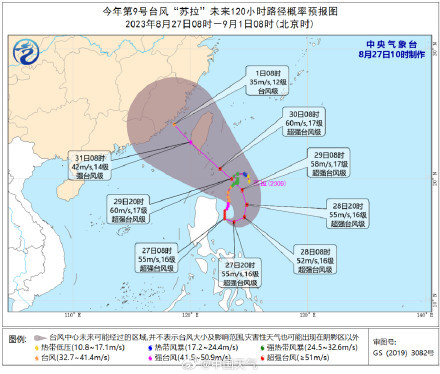 @中央氣象臺(tái) 預(yù)計(jì),“蘇拉”將在菲律賓呂宋島東部海面徘徊,29日開始轉(zhuǎn)向西北方向移動(dòng),強(qiáng)度變化不大,逐漸向臺(tái)灣島南部一帶沿海靠近,并將于30日夜間擦過或登陸臺(tái)灣島南部沿海,然后向福建中部到廣東東部一帶沿海靠近。蘇拉達(dá)維雙臺(tái)共舞受其影響,8月30日至9月1日,“蘇拉”將影響臺(tái)灣以東洋面、南海東北部海域、臺(tái)風(fēng)海峽、東海南部海域,福建、浙江沿海等地將有較強(qiáng)降雨。