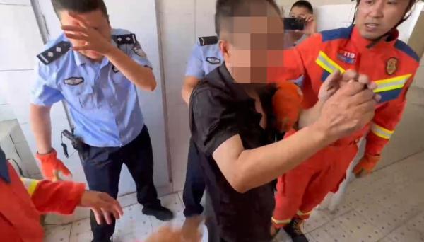 “我們2人迅速?zèng)_上了樓頂,但男子手扶的窗口極其狹窄,位置十分不利,我們當(dāng)時(shí)緊忙抓住了他的胳膊雙手,防止出現(xiàn)意外,但是由于天氣炎熱和他的情緒緊張,男子的胳膊上全是汗,稍有不慎就會(huì)滑落。”民警回憶稱:“我們極力安撫男子的情緒,等待后續(xù)救援人員到場(chǎng)。”