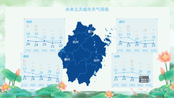 明天(28日):浙西地區陰部分有陣雨或雷雨;其它地區多云,午后轉陰部分有陣雨或雷雨,局部暴雨。