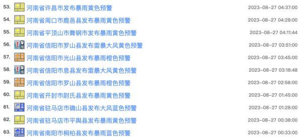 河南省氣象臺8月27日8時繼續發布暴雨黃色預警
