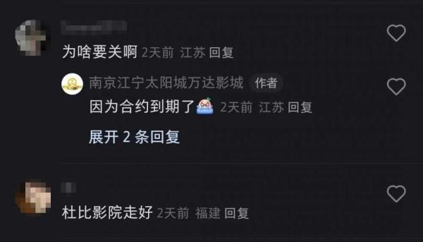 南京江寧太陽(yáng)城萬(wàn)達(dá)影城曾在告別儀式帖子的評(píng)論區(qū)回復(fù)網(wǎng)友:“因?yàn)楹霞s到期了?!?/p>