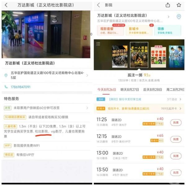 其中昆明正義坊萬(wàn)達(dá)影城雖然名稱還帶有“杜比影院”,影院介紹里也有“杜比影院”的字樣,但電影票預(yù)售平臺(tái)上已經(jīng)找不到杜比影院的排片。