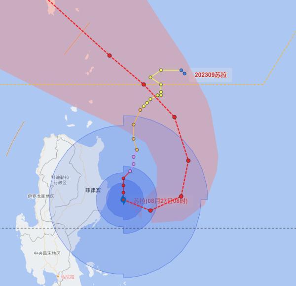 今天(27日)08時臺風中心位于距離菲律賓馬尼拉東北方向約320公里的洋面上,中心附近最大風力有16級(55米/秒),中心最低氣壓為930百帕,七級風圈半徑220-250公里,十級風圈半徑80-100公里,十二級風圈半徑50-60公里。