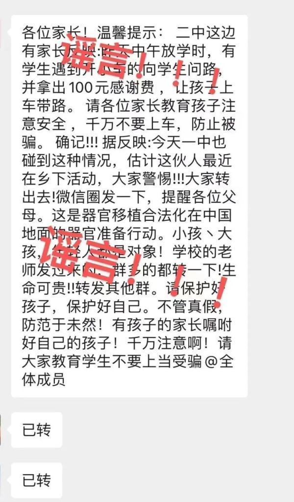 據反映:今天一中也碰到這種情況,估計這伙人最近在鄉下活動,大家警惕!!!大家轉出去!微信圈發一下,提醒各位父母。這是器官移植合法化在中國地面的器官準備行動。
