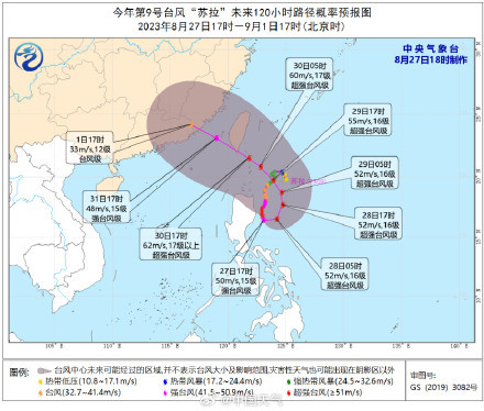 “蘇拉”靠近臺灣島及以后的路徑仍存在一定不確定性。不過基本確定的是,8月30日至9月1日,“蘇拉”將影響臺灣以東洋面、南海東北部海域、東海南部等海域,福建、浙江沿海等地將有較強降雨,上述地區(qū)公眾要做好防范~