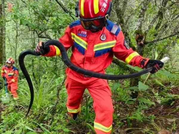 8月25日12時05分,普洱市景東縣消防救援大隊接到龍街鄉派出所轉警稱:位于龍街鄉街道后面樹林里有一條眼鏡王蛇出沒,對周邊村民安全造成威脅,請求前往處置。接到報警后,大隊出動1車5人前往處置。