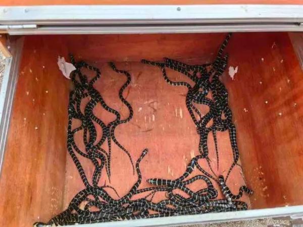 在了解掌握情況后,指揮員迅速制定捕蛇方案,將救援人員分成2個小組:一組由1名救援人員負責警戒;另一組2名救援人員穿著個人防護裝備,攜帶捕蛇器對蛇實施抓捕。行動中,當消防救援人員靠近蛇窩時,蛇有所警覺開始“逃跑”,2名救援人員立即上前抓捕,用捕蛇器對蛇進行首尾夾擊,迅速將其捕捉后放入事先準備好的轉移箱內。隨后,救援人員又對蛇窩進行搜尋,發現蛇蛋已孵化,一條條小蛇聚集在窩里亂竄躲避,救援人員隨即用捕蛇器小心將小蛇逐一放入轉移箱內,避免造成傷害,經清理后發現小蛇數量多達31條。
