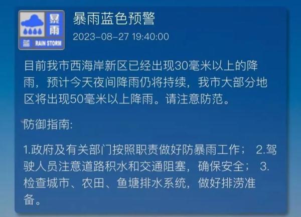 目前我市西海岸新區(qū)已經(jīng)出現(xiàn)30毫米以上的降雨,預(yù)計(jì)今天夜間降雨仍將持續(xù),我市大部分地區(qū)將出現(xiàn)50毫米以上降雨。請(qǐng)注意防范。