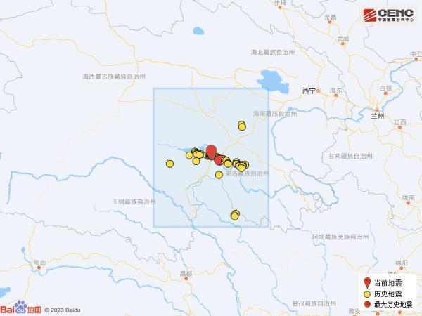 歷史地震:根據(jù)中國(guó)地震臺(tái)網(wǎng)速報(bào)目錄,震中周邊200公里內(nèi)近5年來(lái)發(fā)生3級(jí)以上地震共98次,最大地震是2021年5月22日在青海果洛州瑪多縣發(fā)生的7.4級(jí)地震(距離本次震中30公里),按震級(jí)大小前50次歷史地震分布如圖。