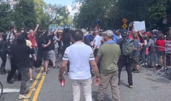 美國紐約民眾舉行集會(社交媒體視頻截圖)