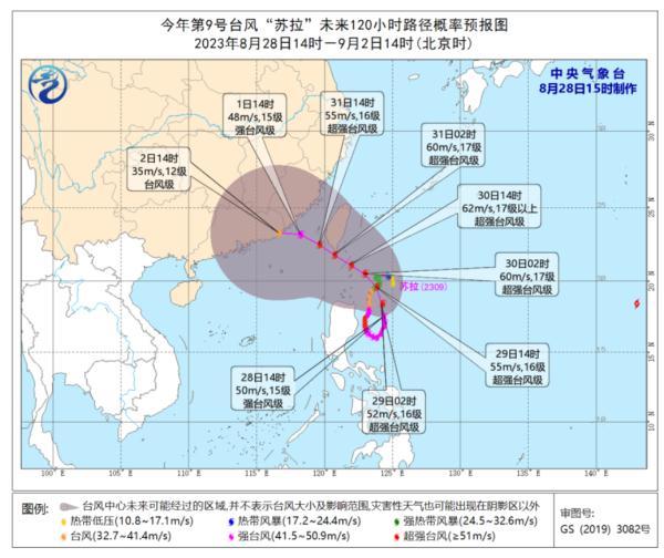 此外,臺風“蘇拉”將在本周影響我國。預計,“蘇拉”28日將在菲律賓呂宋島東部海面徘徊,29日開始轉向西北方向移動,強度將再次增強,逐漸向臺灣島南部一帶沿海靠近,并將于30日夜間擦過或登陸臺灣島南部沿海,然后向福建中部到廣東東部一帶沿海靠近。