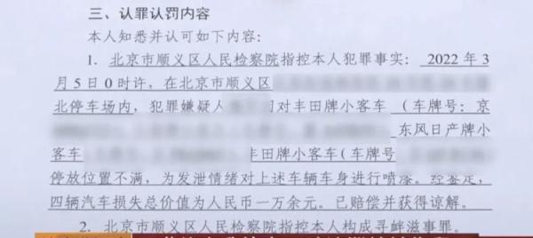 2022年3月的一個早上,北京市順義某小區多位車主打電話報警稱自己的車被人噴漆了。