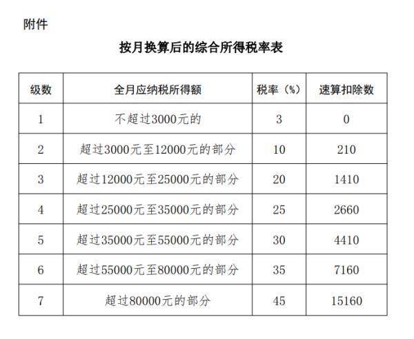 一、居民個人取得全年一次性獎金,符合《國家稅務總局關于調整個人取得全年一次性獎金等計算征收個人所得稅方法問題的通知》(國稅發〔2005〕9號)規定的,不并入當年綜合所得,以全年一次性獎金收入除以12個月得到的數額,按照本公告所附按月換算后的綜合所得稅率表,確定適用稅率和速算扣除數,單獨計算納稅。計算公式為: