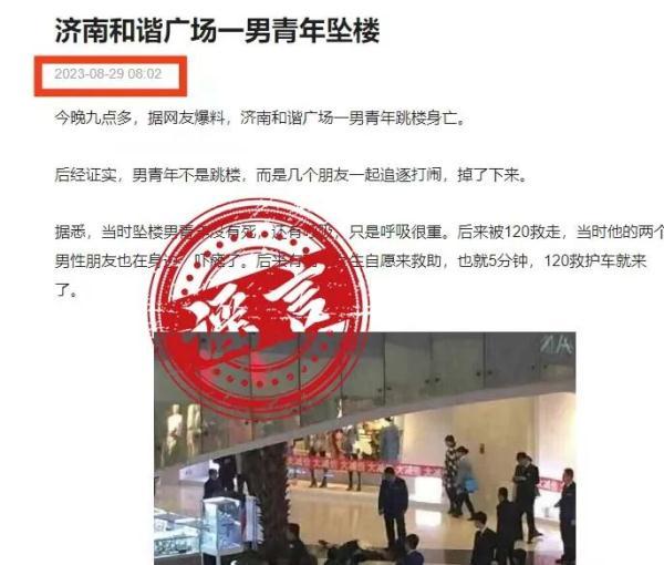 8月29日,有網民發布消息稱“濟南和諧廣場一男青年跳樓身亡”,引發網民關注。
