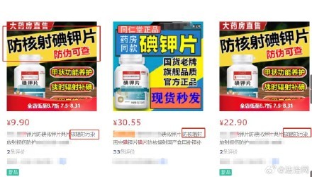 企查查APP顯示,近期,福建省莆田市一商家因違規宣傳碘化鉀產品具有抗核輻射功效,被仙游縣市場監督管理局罰款2500元。違法詳情顯示,當事人在網上銷售的一款名為“穩定碘碘片消毒卡抗核輻射神器”商品銷售頁面發布的廣告內容含有“抗核輻射、200%防護”,涉嫌虛構產品功效,違反了《中華人民共和國廣告法》第二十八條相關規定。