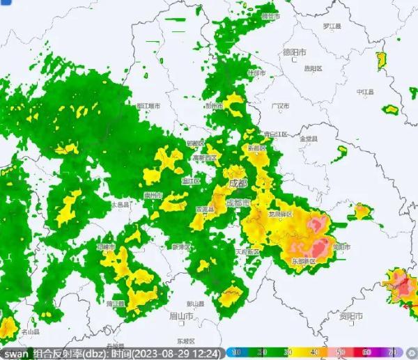 預計未來6小時,成都市東部新區部分鎮(街道)降雨量將達50毫米以上。