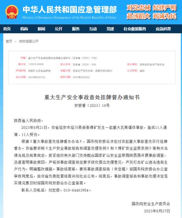 據應急管理部網站29日消息,國務院安全生產委員會發布“重大生產安全事故查處掛牌督辦通知書”。