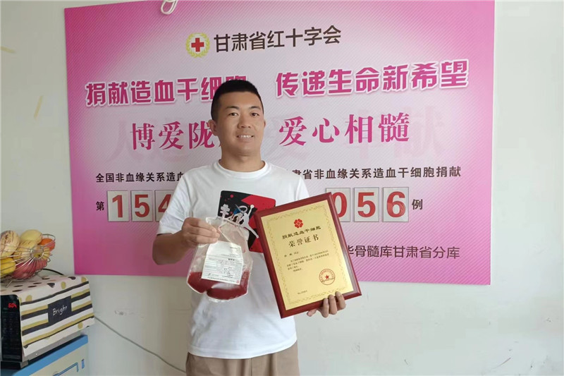 6月中旬,承載著愛與希望的造血干細胞混懸液成功采集完畢,小呂成為甘肅省第56例、中華骨髓庫第15411例非親緣造血干細胞捐獻者。生活中的小呂,是一個積極陽光的大男孩。他愛好打籃球、跑步等運動。熱愛運動的他有著健康的生活習慣,全身都充滿運動的細胞他,同樣擁有著永不放棄的運動精神,這是一種積極的人生態度。 2013年,小呂參加工作,成為一名警察。多年參與愛心公益事業的經歷和職業使命感更點燃了他內心奉獻愛心幫助他人的熱忱。2019 年10月,小呂在獻血活動中,志愿加入中華骨髓庫,為需要的患者時刻準備著。
