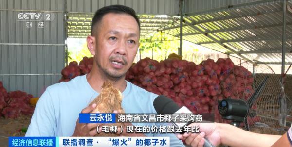 海南省文昌市椰子采購商云永悅:毛椰現在的價格跟去年比,漲幅在20%左右。用水的人比用肉的多。需求大于供給,所以就開始出現緊張。