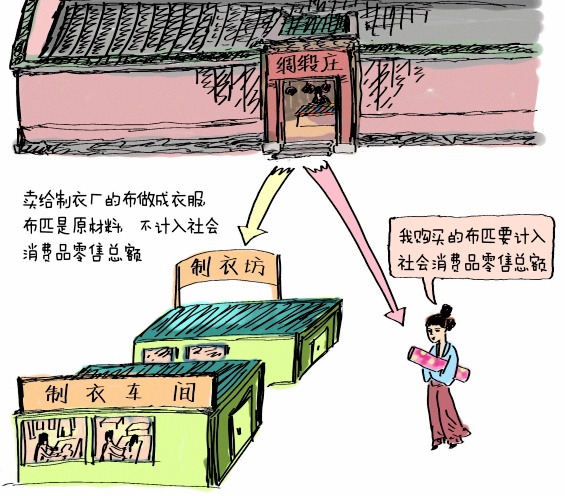 就個人消費而言,反映的是我們日常生活中吃、穿、住、行、用等商品的消費,但不包括售給農民的農業生產資料。就社會集團而言,反映的是用于非生產、非經營目的的消費,不包括用于生產經營和固定資產投資所購買的原材料、燃料和其他消耗品。