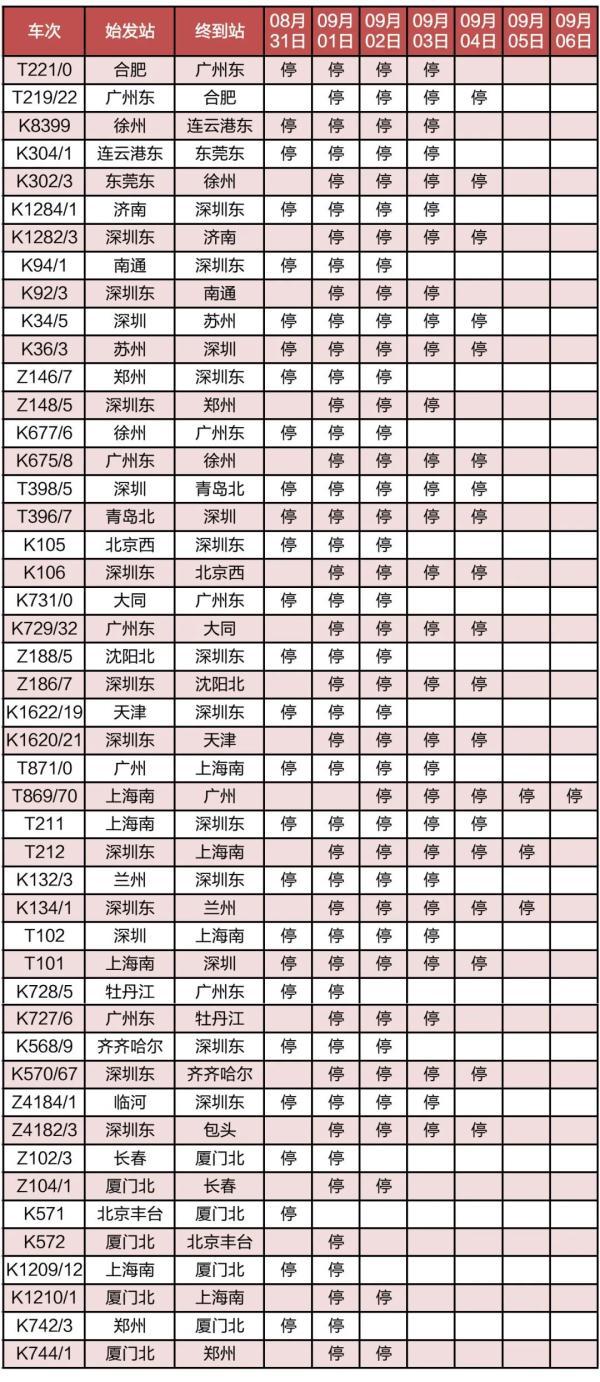 受臺風(fēng)“蘇拉”影響停運(yùn)普速列車信息表
