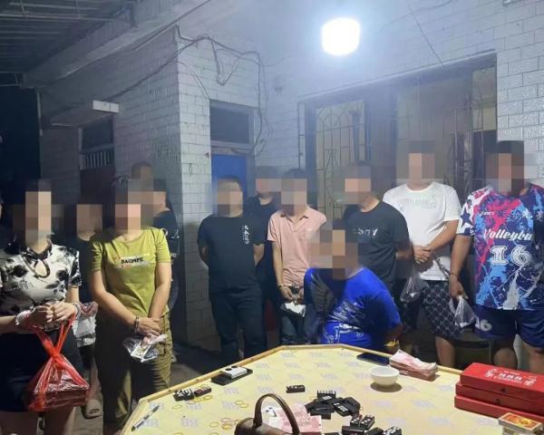 在經過前期縝密摸排,掌握了該賭博窩點的組織結構及活動規律等情況后。8月24日,瓊海市公安局組織巡特警大隊、塔洋派出所等部門精干警力,聯合開展統一收網行動,于塔洋鎮某處荔枝園內搗毀“牌九”賭博窩點一處,當場抓獲涉賭人員16名,查扣賭資3萬余元及賭具若干。