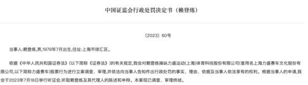 證監(jiān)會最新更新披露的一則行政處罰決定書顯示,證監(jiān)會對賴登練操縱力盛運動(上海)體育科技股份有限公司(曾用名上海力盛賽車文化股份有限公司,以下簡稱力盛賽車)股票行為進行立案調(diào)查、審理發(fā)現(xiàn),2020年1月3日至12月24日期間,賴登練控制使用賬戶組集中資金優(yōu)勢、持股優(yōu)勢,通過連續(xù)交易,或者在自己實際控制的賬戶之間進行證券交易,操縱、影響“力盛賽車”交易價格或者交易量。