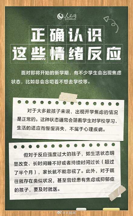 有的學(xué)生會(huì)出現(xiàn)緊張、焦慮,甚至提不起精神,學(xué)習(xí)態(tài)度消極等情況。對(duì)此,家長應(yīng)該如何幫助他們調(diào)整心態(tài),盡快適應(yīng)新學(xué)期呢?(人民網(wǎng)記者孫紅麗)