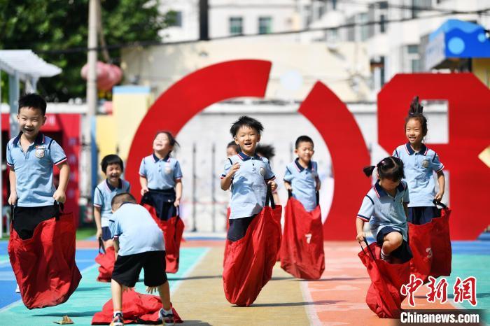 8月31日,涿州市幼兒園的孩子們正在進行戶外活動。 中新網記者 翟羽佳 攝