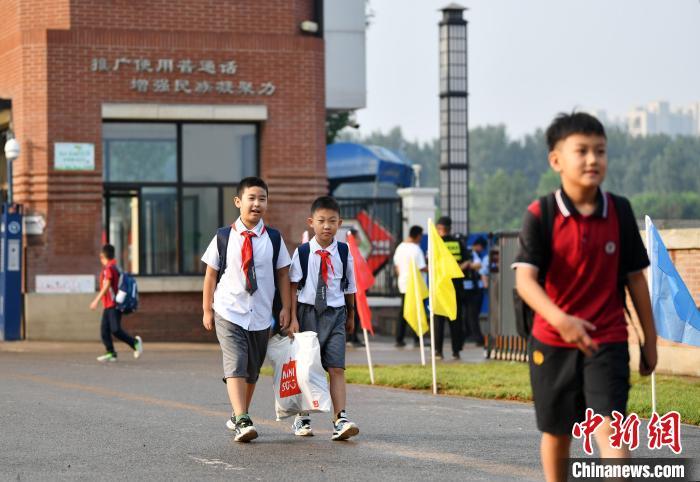 8月31日,涿州市高新區學校開學,學生有序進入校園。 中新網記者 翟羽佳 攝