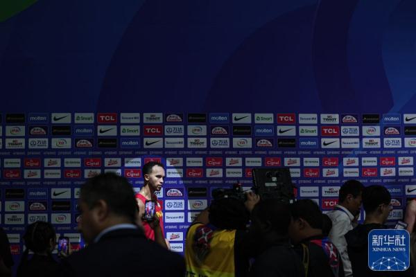 ↑中國隊球員李凱爾在比賽結束后接受采訪。新華社記者 吳壯 攝