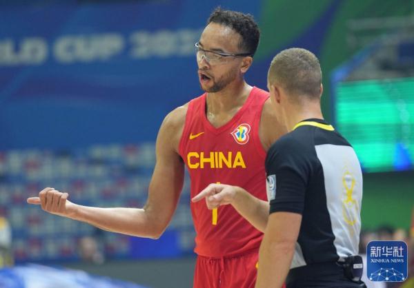 ↑中國隊球員李凱爾在比賽中與裁判交流。新華社記者 孟永民 攝