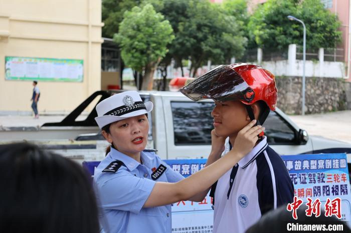 民警向?qū)W生們普及騎行不佩戴安全頭盔、超員超載、違法載人等交通違法行為的危害性。上杭縣融媒體中心供圖