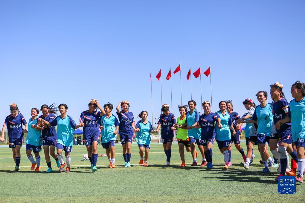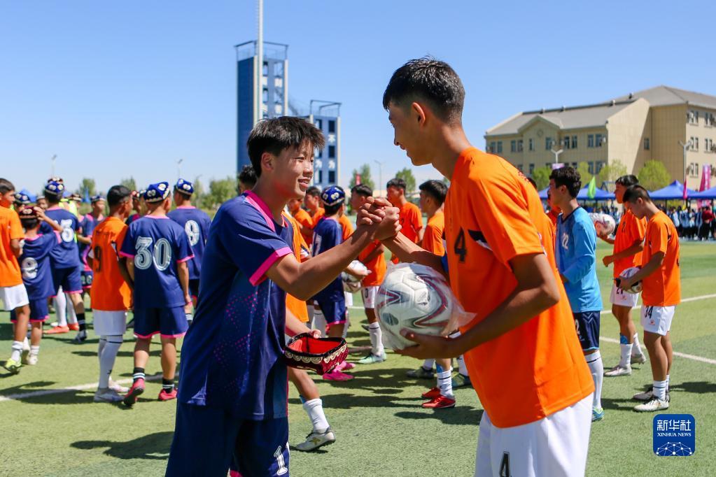 8月30日,在喀什賽區(qū),黔西南代表隊(duì)和喀什代表隊(duì)參賽選手比賽后拉起手互相致意。新華社記者 郝昭 攝