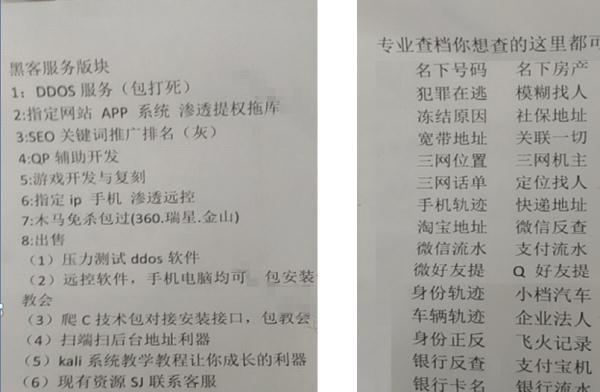 經(jīng)過調(diào)查民警發(fā)現(xiàn),該“工作室”涉及的“服務”有:DDOS網(wǎng)站攻擊、APP系統(tǒng)滲透、指定IP電腦和手機遠控,出售攻擊軟件和教程等。