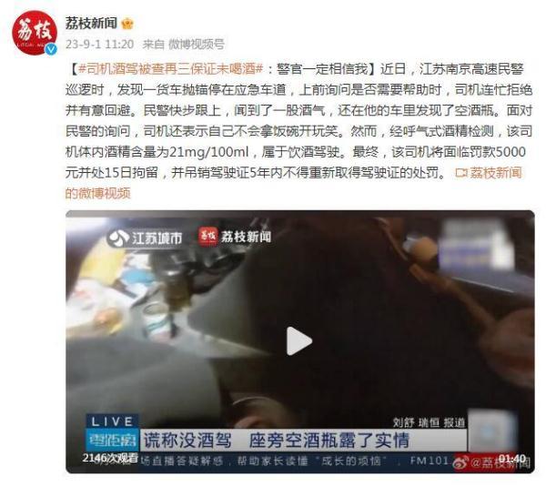 近日,江蘇南京高速民警巡邏時,發現一貨車拋錨停在應急車道,上前詢問是否需要幫助時,司機連忙拒絕并有意回避。民警快步跟上,聞到了一股酒氣,還在他的車里發現了空酒瓶。面對民警的詢問,司機還表示自己不會拿飯碗開玩笑。然而,經呼氣式酒精檢測,該司機體內酒精含量為21mg/100ml,屬于飲酒駕駛。最終,該司機將面臨罰款5000元并處15日拘留,并吊銷駕駛證5年內不得重新取得駕駛證的處罰。