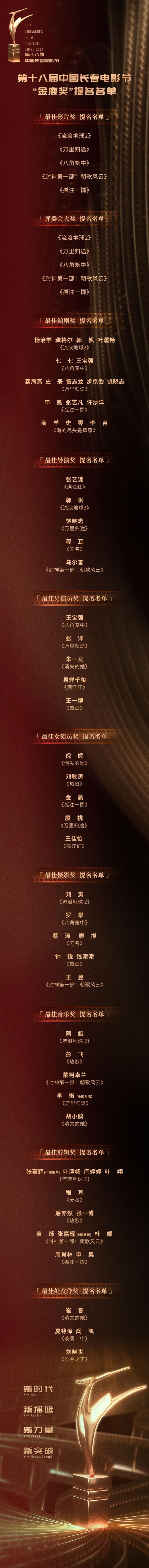 9月1日,第十八屆中國(guó)長(zhǎng)春電影節(jié)“金鹿獎(jiǎng)”提名名單發(fā)布。
