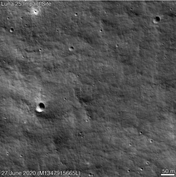在9月1日的新聞稿中,NASA表示,俄羅斯聯邦航天局于8月21日發布了對撞擊點的估計分析。對此,美國LRO任務團隊22日向“月球勘測軌道器”發送指令,嘗試捕獲撞擊點圖像。通過比較同一區域的前后圖像,LRO任務團隊在月球表面發現了一個新的小型撞擊坑。