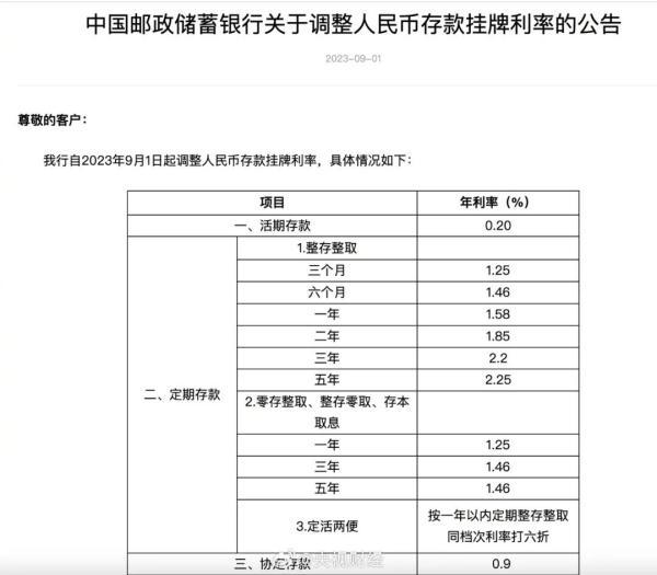 郵儲銀行一年期整存整取利率下調10個基點后為1.58%。一年期以下整存整取利率、零存整取、整存零取、存本取息、定活兩便、協定存款及通知存款利率暫未調整。