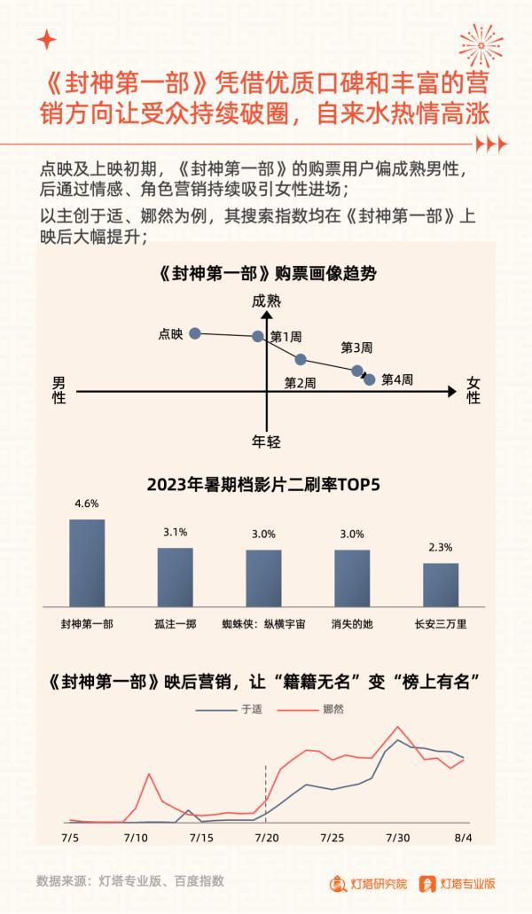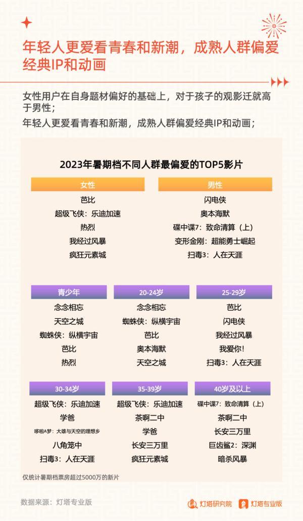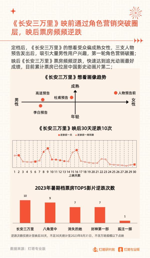2023年9月1日,燈塔研究院聯(lián)合新華網(wǎng)發(fā)布《長風破浪,勢不可擋——2023年暑期檔電影市場洞察報告》,從市場大盤、用戶畫像、競爭格局、重點影片、城市影院等五大維度進行復盤分析。