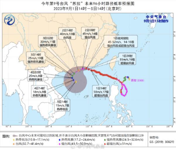 9月1日14時,超強臺風“蘇拉”中心附近最大風力17級(58米/秒)。預計,“蘇拉”將以每小時10~15公里的速度向西偏北轉偏西方向移動,將于今天夜間到明天上午以強臺風級或超強臺風級 在廣東惠東到臺山一帶沿海登陸,也不排除在廣東中部近岸海面向西偏南方向移動的可能。