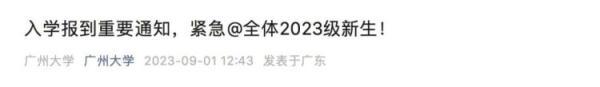 廣州大學:原計劃于9月1日、2日報到的2023級學生(含全體本科生、預科班新生和研究生新生),如因天氣等原因導致不能按時報到,報到時間可延長至9月3日、4日,報到地點不變 。