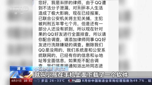 小石的母親 彭女士:后面那個“明星”的QQ號給她發信息,說他的隱私被泄露出去了,要小孩子再加一個他的“律師”的QQ號,那個“律師”來跟她談一下。