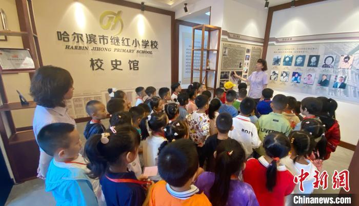 哈爾濱市繼紅小學南崗校區坐落在東北烈士紀念館邊,這所小學全市有三處小區,目前也是黑龍江省辦學規模最大的小學,現在有萬名小學生。開學當日,當日8時多,剛進入小學的一年級“小豆包”們坐在教室里,聽老師詳細地講解小學生規范,每個人的桌子上都放著自己動手畫的姓名的桌牌。一年級開學第一課是走進校史館聆聽校史,了解“像先輩那樣,堂堂正正做人,踏踏實實做事”的校訓。