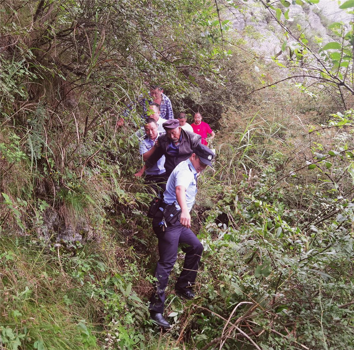 “我拉著您的手,您別害怕,慢慢走,不急。”道路狹窄,左手邊就是懸崖,民警小心翼翼地牽著老人的手,慢慢地沿著荊棘叢生的山路艱難行走近1公里,最終成功將老人牽到安全地帶。