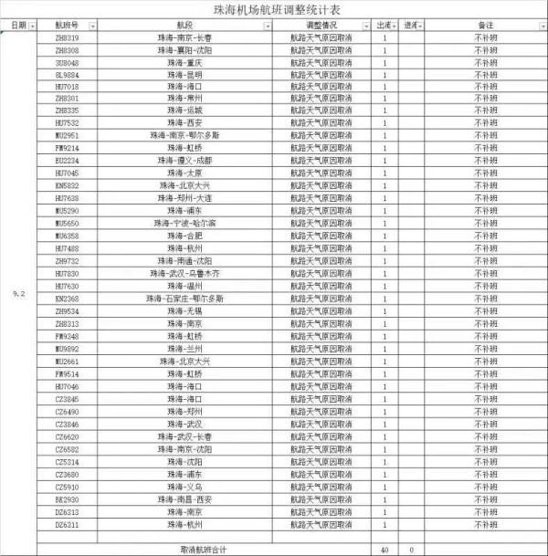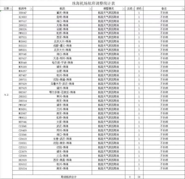 受臺風“蘇拉”影響,珠海機場取消9月2日出港航班40班,進港航班38班。