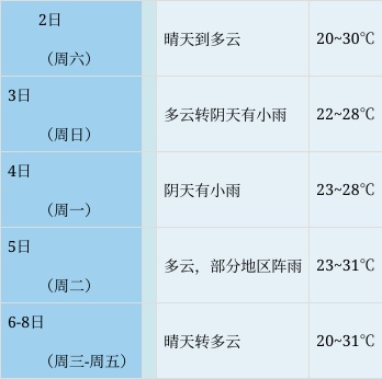 6-7日:江北晴天到多云,江南多云有時陰天。