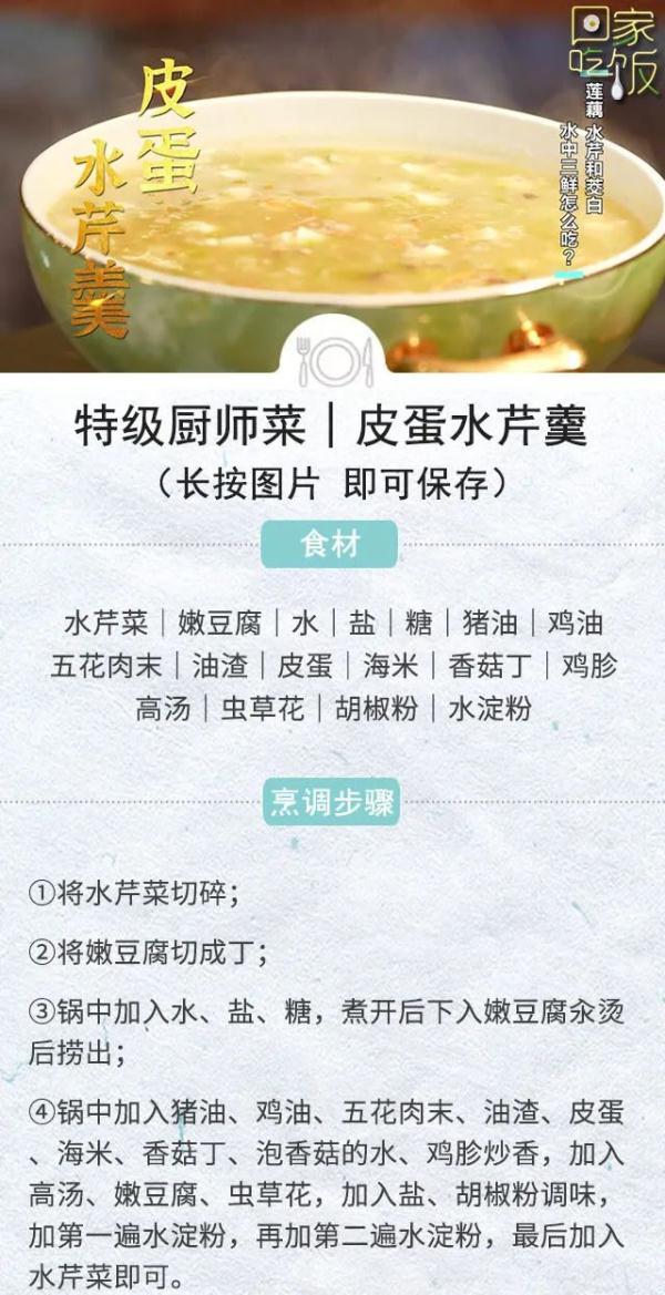 藕夾三明治鮮美多汁,秋日不可錯(cuò)過的鮮味。茭白燒鰻魚,鰻魚軟藍(lán)脫骨,茭白鮮香入味。皮蛋水芹羹,秋高氣爽喝碗湯,讓您滿嘴都留香!