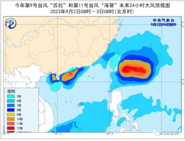 預計今明兩天,“蘇拉”將以每小時10-15公里的速度向西偏南方向移動,強度逐漸減弱,并向雷州半島東部近海靠近。未來24小時,廣東西南部、廣西東南部、香港、澳門以及云南西部、臺灣島東部等地部分地區有大到暴雨,其中,廣東西南部部分地區有大暴雨;南海西北部、北部灣東部、瓊州海峽及廣東沿海、廣西南部沿海、珠江口以及香港和澳門等地將有7-9級、陣風10-11級的大風,“蘇拉”中心經過的附近海面或地區風力有12-13級、陣風14-15級。